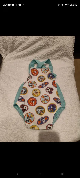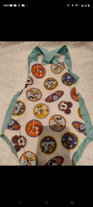 Preciosa ranita para bebé con estampado de Mickey Mouse. Es cómoda y alegre. Talla 3 meses - Diseño con múltiples círculos de Mickey Mouse. - Tirantes y detalles en color turquesa. - Tejido suave y ligero.