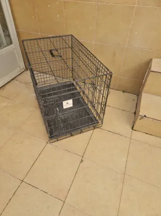 Jaula metálica para el transporte de perros. Ideal para viajes o como espacio seguro. - Barras de metal resistentes. - Puerta con cierre de seguridad. - Bandeja extraíble para facilitar la limpieza.