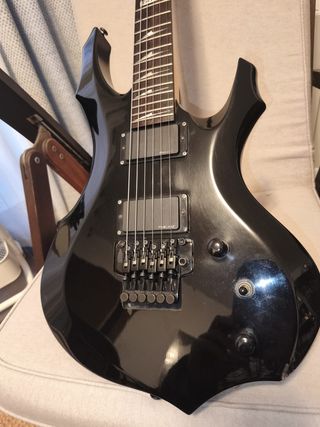 LTD F-200 del año 2006 en buen estado general. Guitarra con estética agresiva tipo picuda metal muy de principios de los 2000, muy cómoda para tocar de pie y con gran acceso a trastes altos. Construcción sólida típica de las LTD de mediados de los 2000: guitarras hechas para aguantar ensayo y directo. Características: - Cuerpo tipo F (estética moderna / metal) - 2 humbuckers: EMG-hz - Puente floyd rose licensed con cojinetes recién cambiados. - Mástil rápido y cómodo - Sonido contundente para metal, hardcore, hard rock o afinaciones graves Tiene los típicos signos normales de uso, pero funciona correctamente. CAMBIO