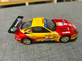 Coche de slot Scalextric analógico con luces Ferrari 550 Maranello. Funciona perfectamente, únicamente le faltan los retrovisores. Se hacen envíos por Wallapop. #Exin Tyco Tecnitoys SCC Scalextric