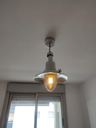 Lámpara colgante con un diseño inspirado en el estilo marinero e industrial. Su acabado plateado y la pantalla de cristal le dan un toque distintivo. - Estructura de metal resistente. - Pantalla de cristal transparente.