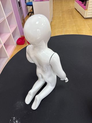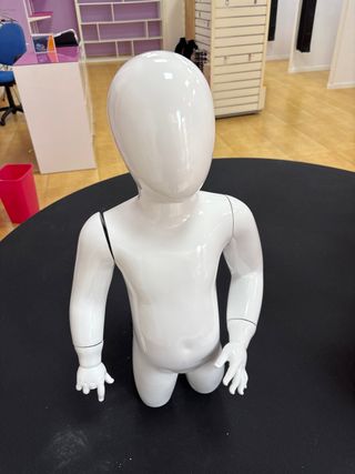 Maniquí infantil de plástico brillante. - Diseño liso y moderno. - Ideal para escaparates o exposiciones.