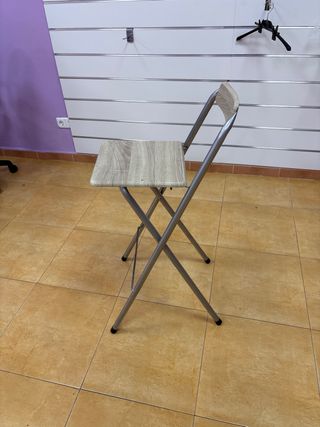 Silla plegable con un diseño moderno y funcional. - Asiento y respaldo con acabado en madera. - Estructura de metal resistente.