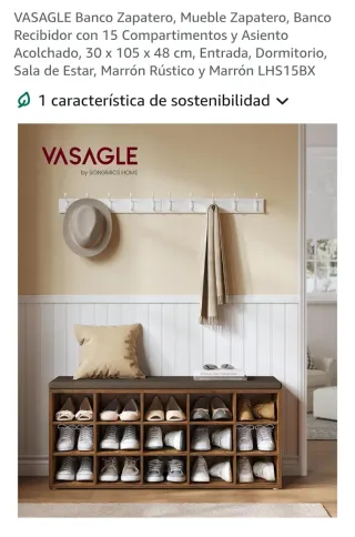 Banco zapatero VASAGLE de madera, en color marrón rústico. Tiene espacio para 15 pares de zapatos y un asiento acolchado. Medidas: 30 x 105 x 48 cm. Completamente nuevo, sin montar. Lo vendo porque se me ha pasado el tiempo de devolución. Me costó 86€, lo vendo por 60€.
