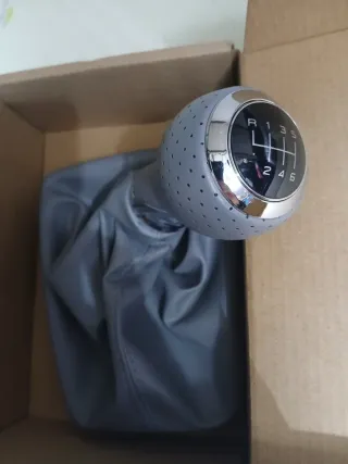 Pomo de palanca de cambios para Audi A4 B8 en color gris. Es un artículo nuevo. comprado por error - Diseño con perforaciones. - Acabado cromado en el anillo superior. - Incluye la funda de polipiel gris.