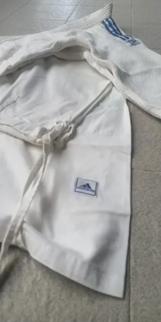 Judogui Adidas blanco J500.para la práctica de Judo. Está como nuevo(se ha usado 8 veces ) se puede apreciar en los ribetes,la etiqueta y los parches de la marca. Hubo lesión y se dejó en armario. Vendo porque ocupa mucho espacio y ya no lo usaré más REGALO del cinturón del color que quieras(menos el negro) - Diseño clásico con las tres rayas. - Tejido resistente y cómodo.