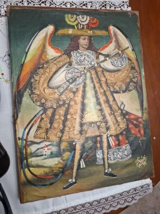 Interesante pintura de un árcangel arcabucero, medidas 30x40, con bastidor.