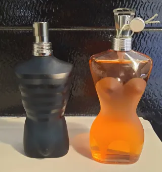 Dos fragancias icónicas de Jean Paul Gaultier, una para hombre y otra para mujer. Completamente nuevos, el de mujer conserva el ccierre. El de hombre no, pero no se ha usado. - Frascos con diseño distintivo. - Sin su caja.