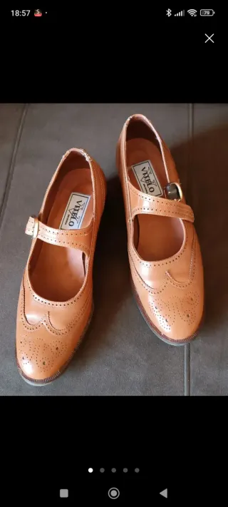 Elegantes zapatos de la marca VITELO en color marrón. - Diseño tipo Mary Jane con tira y hebilla. - Detalle de picado en la puntera y laterales. - Suela con acabado cosido. - Usado en 2 ocasiones. - No conservo caja original.