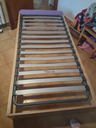 vendo dos camas individuales de 90 cm con somier.20€ cada una y sin sumier 15€cada una. - Estructura de madera y metal.