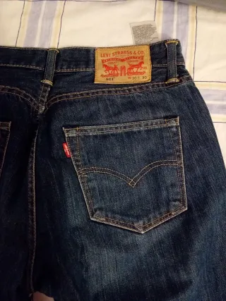 Pantalones vaqueros de mujer de la marca Levi's. - Corte clásico. - Bolsillos traseros con pespuntes característicos. - Parche de cuero en la parte trasera.
