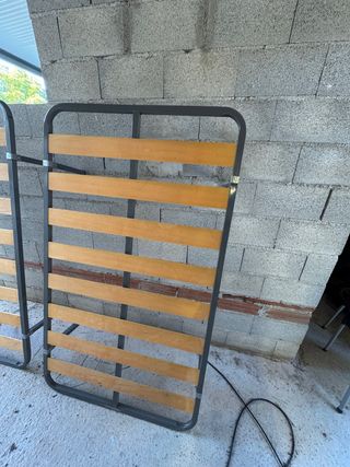 Base de cama con listones de madera y estructura metálica. - Medidas: 105x180 cm. - Listones de madera. - Estructura metálica.