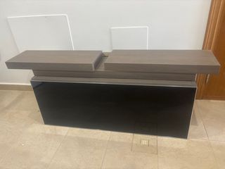 Mueble de pared con un diseño moderno y elegante, ideal para complementar tu espacio. - Acabado en madera y cristal. - Combina colores negro y marrón.