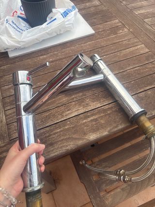 Conjunto de grifos de lavabo - Gira por donde sale el agua. - Diseño moderno y funcional. - Acabado brillante.