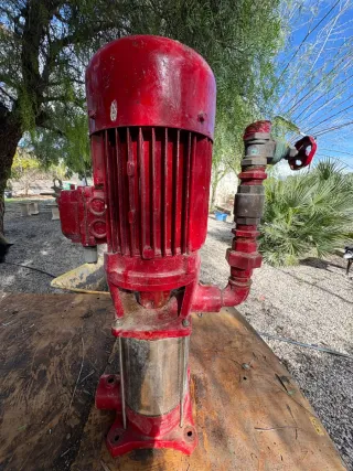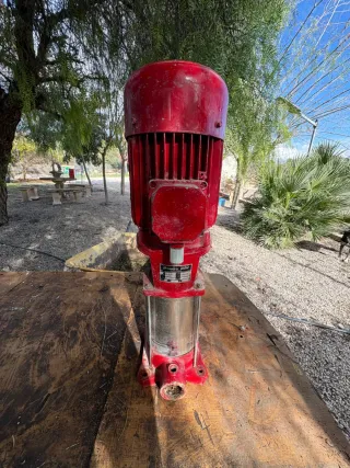 Bomba de agua de color rojo, ideal para diversas aplicaciones. - Cuerpo de la bomba de hierro fundido. - Motor eléctrico de alta eficiencia. - Conexiones de brida.