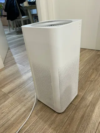 Purificador de aire de la marca Xiaomi en color blanco. Diseñado para mejorar la calidad del aire en tu hogar. - Diseño moderno y elegante. - Filtro de alta eficiencia.