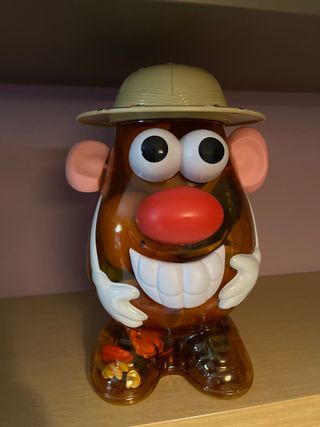 Figura clásica del Sr. Cara de Papa con un divertido sombrero de explorador. - Piezas intercambiables para crear diferentes caras. - Incluye sombrero de explorador. - Base con detalles de hojas.