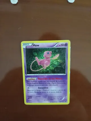 Carta Pokémon de Mew, edición holofoil del año 2016. - Habilidad: Recuerdos de los Albore. - Ataque: Encuentro. - PS: 50.