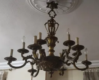 Lámpara de techo con un diseño elegante y llamativo. - Acabado en tonos dorados y marrones. - Fabricada en metal y cristal.