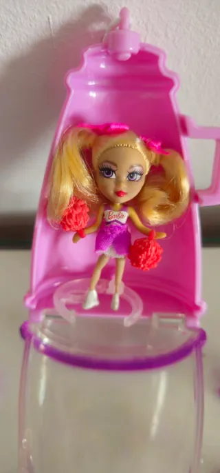 Muñeca Barbie animadora vintage con accesorios. - Incluye muñeca con traje de animadora. - Viene con dos pompones. - Incluye dos lazos morados. - Incluye un megáfono morado. - El contenedor es de plástico transparente y morado. Monster high