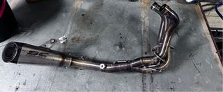 Sistema de escape SC Project para yamaha tracer 900. - Fabricado en acero inoxidable. - Diseño deportivo y ligero. - Incluye silencioso y colectores(linea completa). Tiene dos dbkiller.