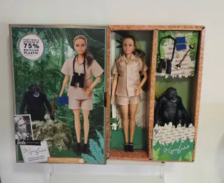Barbie de la serie Mujeres Inspiradoras en honor a la Dra. Jane Goodall. Fabricada con un mínimo de 75% de plástico reciclado. - Incluye figura de la Dra. Jane Goodall. - Accesorios temáticos de investigación y conservación. - Figura de chimpancé. - Caja con diseño de selva y detalles de notas de campo.
