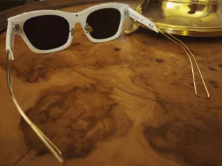 Elegantes gafas de sol Dior J'Adior con detalles dorados y montura blanca. - Diseño distintivo J'Adior. - Acabados metálicos dorados.