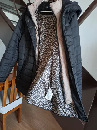 Abrigo acolchado negro con forro estampado
