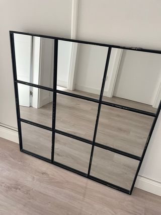 Espejo de diseño con marco negro, ideal para dar un toque moderno a tu hogar. - Estructura de metal. - Acabado en cristal.