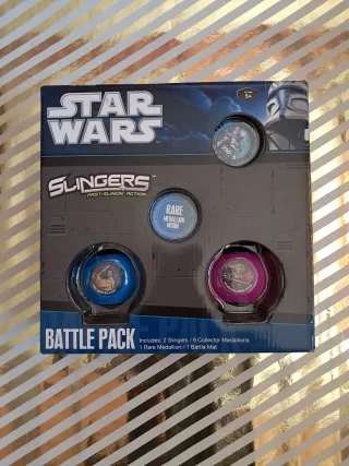 Pack de batalla de Star Wars Slingers con acción rápida. - Está en perfectas condiciones. - Incluye 2 Slingers. - Contiene 9 medallas coleccionables. - Viene con 1 tapete de batalla.
