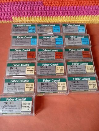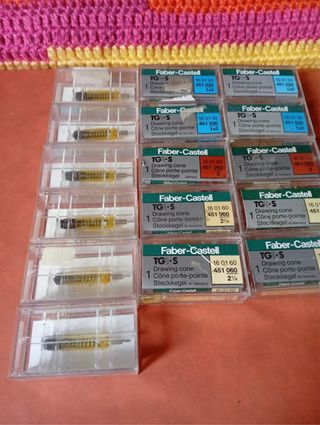Punteras recambios estilógrafos Faber. 6 unds de 0,3mm/3 unds de 0,5mm/6 unds de 0,6mm/1 unds de 0,8mm. 5 unds 15€. 10 unds 25€. 16 unds 32€. - Fabricado en Alemania