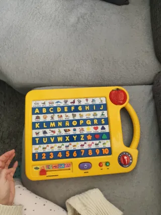 Juguete educativo para aprender el abecedario y los números. - Incluye letras A-Z y la Ñ. - Botones con números del 1 al 10. - Divertidos dibujos asociados a cada letra. - Funciones de juego y aprendizaje.