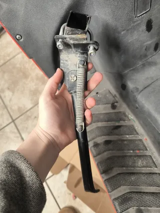 Pata de cabra original para Beta Ark 50cc. Pieza de repuesto. - Fabricada en metal negro. - Incluye muelles y tornillería de sujeción.
