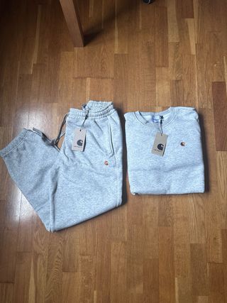 Conjunto deportivo de Carhartt en color gris. - Sudadera con cuello redondo. - Pantalón de chándal con cordón ajustable.