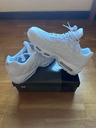 Zapatillas Nike Air Max 95 TT en color blanco. Un clásico reinventado con un diseño moderno y detalles únicos. - Diseño inspirado en el cuerpo humano. - Unidad Air Max visible en talón y antepié. - Materiales de alta calidad para mayor durabilidad.