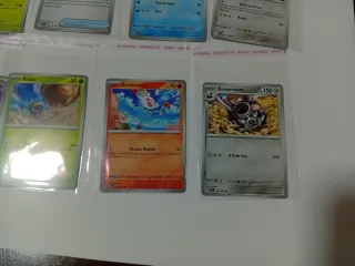 Conjunto de cartas Pokémon variadas.todas por 3€ el lote,todas las cartas de mi perfil originales,no se admiten devoluciones por cantidad de artículos,leer mis valoraciones Nota se puede hacer lote por todas las cartas de mi perfil por solo 10€ - Carta Lokix - Carta Super Ball - Carta Lapras - Carta Bronzor - Carta Energía Básica - Carta Rellor - Carta Scorbunny - Carta Revavroom