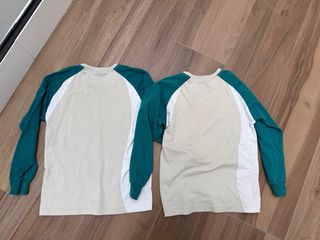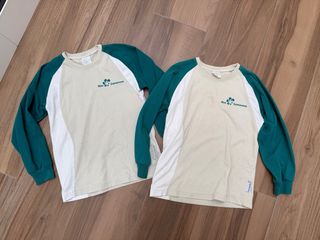 Lote de dos camisetas de manga larga para niño/a. - Talla 6. - Diseño con mangas y cuello en contraste. - Estampado Mas Camarena en el pecho. Perfecto estado Se puede entregar en mano en cercanías de colegio