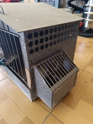 Jaula metálica con bebedero y comederos incorporado, diseñada para albergar dos perdices. - Estructura de metal galvanizado. Con algunos oxidos pero ningun roto y con sus comederos y bebedero Recoger en Albal
