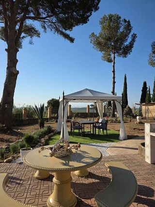 < Atrás Chalet en Turís 46389 Turís, Valencia, España A la venta 220.000€ Hermoso chalet en el pueblo de Turís ubicado en una urbanización tranquila. La vivienda se encuentra construida en suelo Urbano, está asfaltada hasta la puerta, y dispone de 130 m2 de vivienda y 1050 m2 de parcela. El interior de la vivienda está distribuido una habitación doble con baño en suite, una habitación individual, dos baños completos -uno en suite un despacho con chimenea y aire acondicionado, un espaciosos salón-comedor con chimenea y cocina completamente equipada. En la parcela encontramos un garaje de 30 m2, una piscina desmontable, una pérgola para las noches de verano, un gallinero, zona de huerto habilitado, lavandería y leñera. Además, la vivienda está construida con tarima/parquet y ventanas climalit con mosquiteras; dispone de internet por fibra simétrica de alta velocidad, luz de red y agua de pozo. La parcela está completamente cercada con verja y malla de ocultación, y posee suelo de baldosas en lugar de cemento.