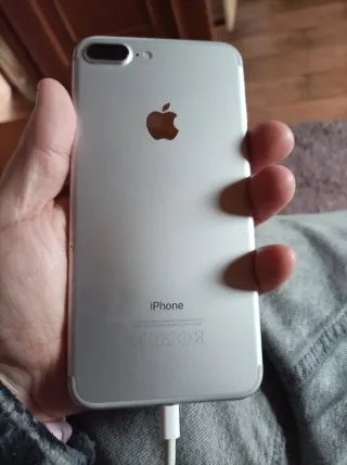 Teléfono móvil iPhone 7 plus en color blanco y plateado. - Pantalla. - Carcasa. - Botones. necesita bsteria nueva altavoz malo con señales de uso SOLO TRATO EN MANO NO ENVIOS