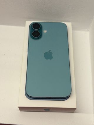 Teléfono móvil iPhone 16 en color azul y con 128GB de almacenamiento. -Salud de bateria al 97,usado desde julio.Lo cambio por pasarme a iphone 17. Color verde azulado. Sin ningún rasguño, siempre se usó funda. Está como nuevo - Diseño elegante y moderno. - Cámara dual en la parte trasera.