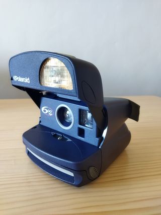 Cámara Polaroid 600AF. Pieza de colección. Se desconoce si funciona. Falta el asa, por lo demás está en muy buen estado. Con su caja original.