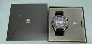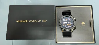 Reloj inteligente Huawei Watch GT con acabado en negro y plateado. - Diseño elegante. - Correa negra. - Gps - Bateria 2 semanas - Cristal templado protector instalado