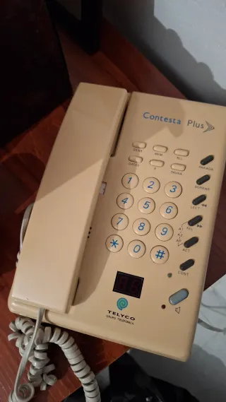 Teléfono fijo Telyco Contesta Plus en color beige. Un modelo clásico con teclado numérico y funciones adicionales. - Teclado numérico con teclas de función. - Pantalla digital. - Diseño retro.