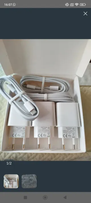 Vendo cable Lightning de Apple, completamente nuevo. - Incluye un cable USB-A a Lightning y un adaptador de corriente USB. - El cable está en perfecto estado y sin usar. - El adaptador de corriente es compacto y ligero. Como beneficio adicional, te enviaré otro cable Lightning, nuevo, sin coste. NUNCA USADO