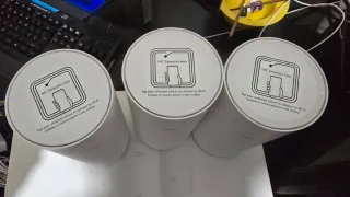 Sistema WiFi Mesh de Huawei para una cobertura de red ampliada en tu hogar. Este pack incluye tres unidades. Funcionan perfectamente, los vendo por actualizar a un modelo nuevo. - 600 metros de cobertura WiFi. - Dispone de app para configurar y comprobar el estado. - Conecta con solo acercar el tlf, cualquier visita podrá conectarse sin necesidad de introducir la clave. - Incluye adaptadores de corriente y cables.