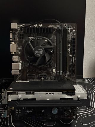 Placa base GIGABYTE GA-B250-FinTech funciona perfectamente a excepción de dos ranuras ram. algo negociable y recogida en mano de preferencia Componentes: -RX 580 8GB Ram - 8GB Ram - intel i7-6700 -adaptador y antena wifi Tp-Link Regalo: -fuente de alimentación de 500 sin usos -Monitor de 23 Full HD -Cascos Gaming -No se vende por partes