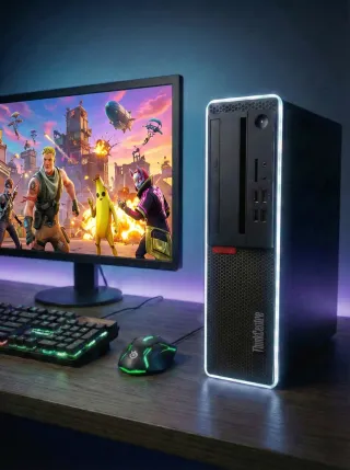PC de sobremesa Lenovo Thinkcentre con procesador Intel Core i5, 8 GB de RAM, disco duro SSD Kingston de 512 GB y fuente de alimentación de 500 watios nueva. Incluye monitor de 19 pulgadas Lenovo funcional aunque presenta franjas verticales mas claras como se puede apreciar en la foto. Incluye ratón y teclado con cable HP. No incluye adaptador WIFI. Tiene instalado Windows 10 actualizado a la version 22H2.