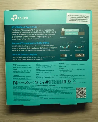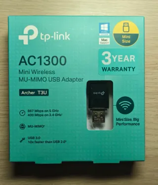 Adaptador de red inalámbrica TP-Link Archer T3U. - Velocidad de hasta 867 Mbps en 5 GHz y 400 Mbps en 2.4 GHz. - Tecnología MU-MIMO. - Interfaz USB 3.0. - Compatible con Windows y Mac.