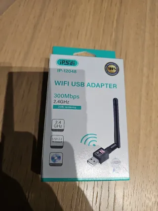 Adaptador USB WiFi nuevo, modelo IP-12048. - Velocidad de 300 Mbps. - Frecuencia de 2.4 GHz. - Incluye CD de drivers.